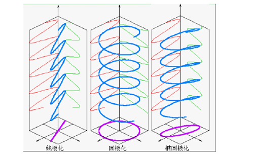 天线的极化即其在给定方向上远区辐射电场的空间取向。通常情况下,指的是该天线在最大辐射方向上的电场空间取向。现实中,随着偏离天线的最大辐射方向,极化方式是有所变化的,在各异的辐射方向上其极化方式可能不一样。与其相正交的极化分量,天线是不可以获取的。对于线极化的天线,不可捕获与其极化方向相互正交的线极化波;对于圆极化天线,不可捕获与其旋转方向相反的圆极化波;对于椭圆极化天线,不可捕获与其旋转方向相反的圆极化波分量。