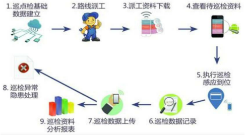 RFID巡检管理系统项目包含设备基本信息管理、设备巡点检管理、 隐患缺陷管理(含隐患缺陷整改流程以及与检修进行关联)、检修管理、特种设备管理、计量器具管理、润滑管理等。经系统运行调试,系统工作正常,对基层点检操作工人的点检作业形成标准化 指导与约束,并对未按规定排班时间进行点检的情况进行违规统计与提醒;可以对巡检的隐患进行分配和验收并进行记录查询;可以对设备的台帐信息进行管理和信息查询,可以对特种设备、计量器具、需润滑的设备进行校验(校准、润滑节点)的时间提醒;可以对相关报表进行查询、统计和导出。