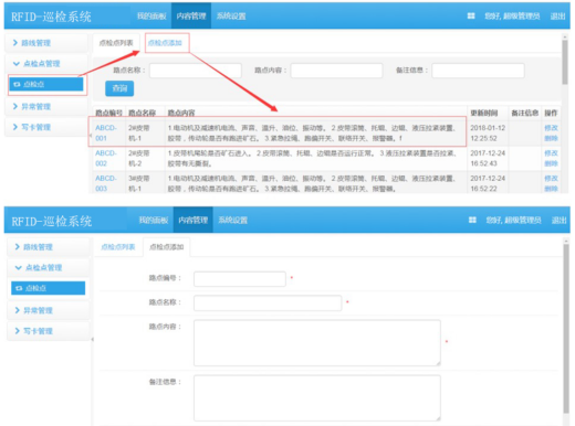 (1)巡检到位的落实:采用先进的RFID技术,人员必须到巡检点进行感应后才能取得该点的资料,从而确保了人员的到位率。