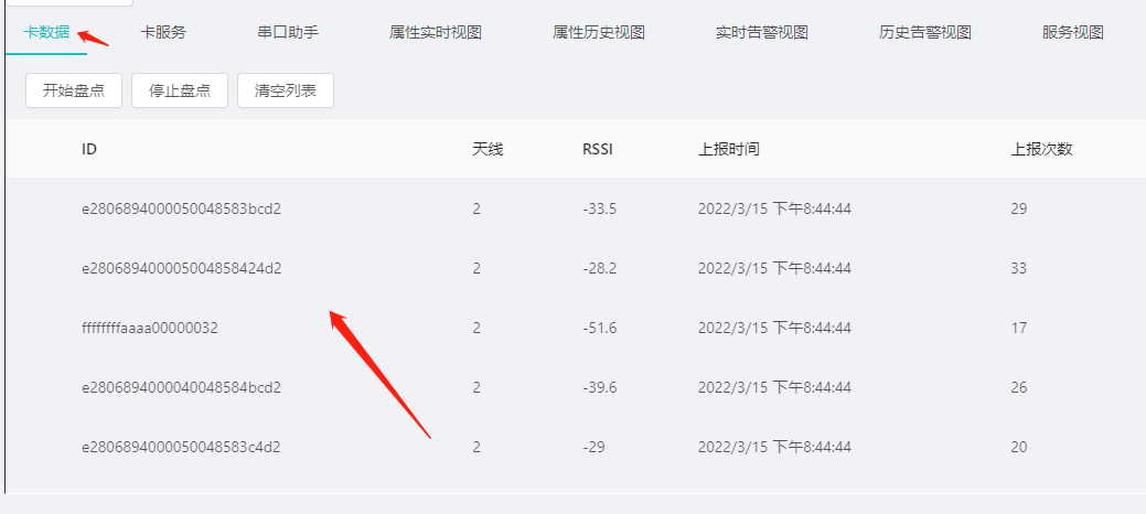 设置功率,勾选天线等常规操作, 进入卡服务,点停止上报,点双透传模式