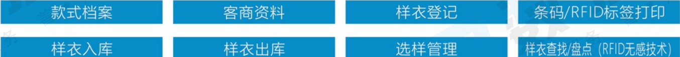样衣出入库登记,通过样衣的RFID标签识别,只需要用RFID手持机终端就可以采集需要出入库的样衣数据,然后通过无线传输把数据同步到后台系统。
