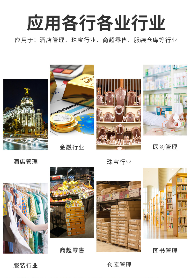 零售业、服装行业、大型仓储管理、交通物流、金融保险、制造业、能源化工业、电力行业、医疗卫生行业、停车管理、餐饮娱乐、港口码头、集装箱货运等。