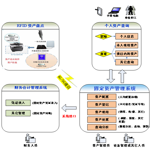 本方案的总体目标为建设一套全员资产管理系统,能高效实现日常资产管理工作,并在资产管理系统中,将责任落实到个人主体。能利用RFID电子标签及相关设备,对贵重资产实行有效监控。能将资产管理系统与财务系统、采购管理系统打通接口,实现资产管理联动,提高工作效率。方案总体功能,如下所示: